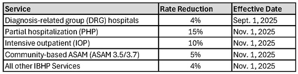 To support the changes outlined in the Medicaid IR Rate Reduction notice, Magellan worked with the Idaho Department of Health and Welfare (IDHW) to make the below Idaho Behavioral Health Plan (IBHP) fee schedule changes. Magellan will continue to coordinate with IDHW to determine how long these rate reductions must be in place or if other service changes are necessary to ensure a balanced budget.