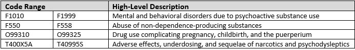 - Examples: Use of Fentanyl, oxycodone, Percocet, heroin, and amphetamines.