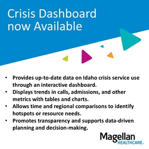 • Allows providers and stakeholders to view up-to-date data on Idaho crisis service utilization across the public sector via an interactive dashboard.